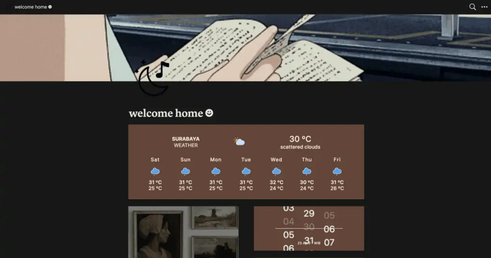 Welcome Home is a simple yet aesthetically beautiful Notion template for multi-purpose. You can find a beautiful aesthetic video cover when you first duplicate this template. Even so, you can later choose to replace it with one of your own GIFs to make it feel more at home.